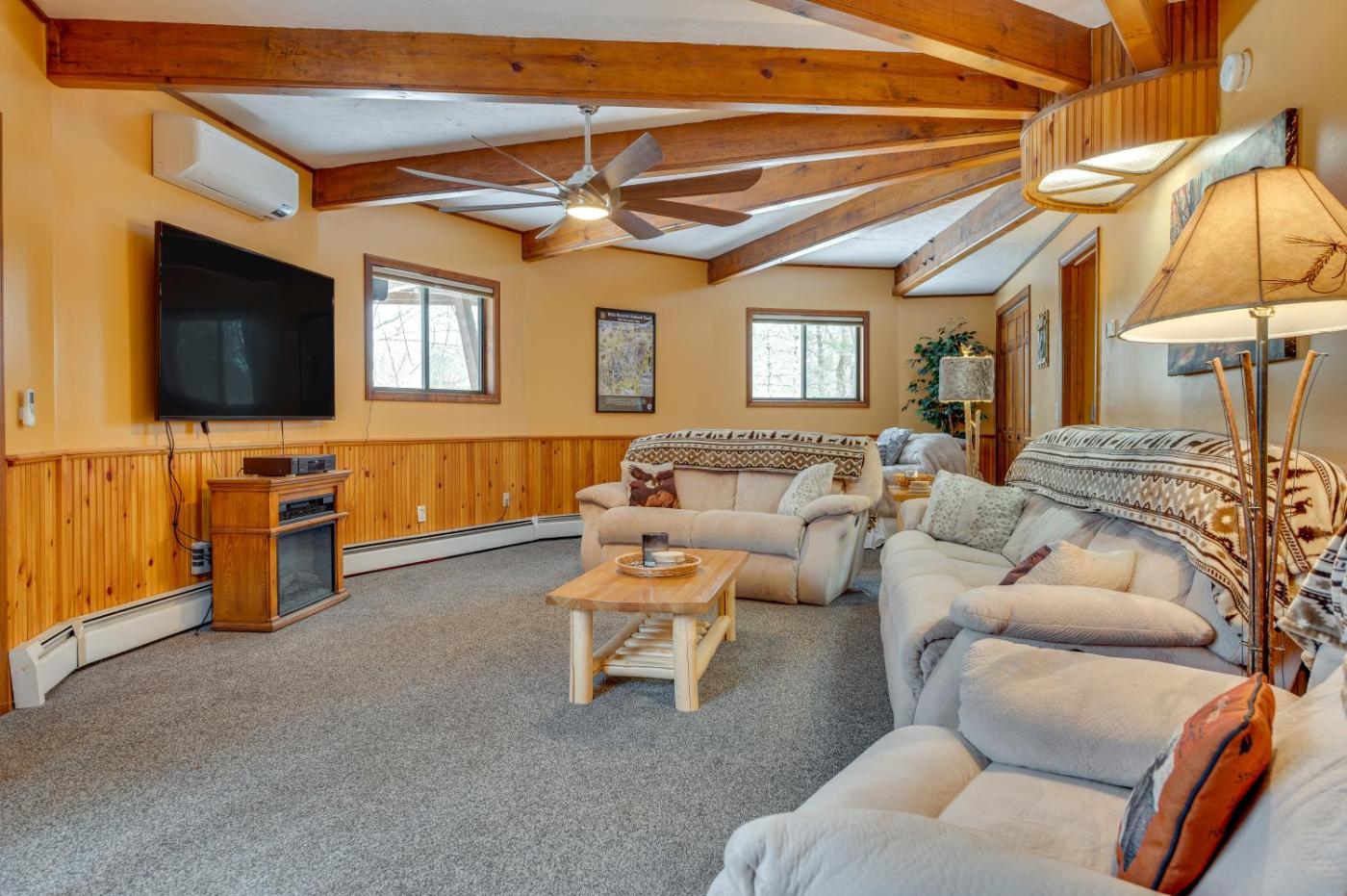 Located in Center Ossipee, 37 km from Kahuna Laguna and 48 km from Story Land Amusement Park, Dock and Beach Access Scenic Lake Ossipee Cabin! offers air conditioning. This beachfront property offers access to a patio. Providing free WiFi throughout the property, the non-smoking holiday home has a spa centre.
