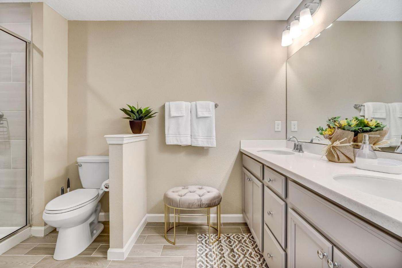 Three-Bedroom Townhouse. Featuring a private entrance, this spacious holiday home also comprises 3 bedrooms, a seating area and 3 bathrooms with a walk-in shower and a bath. Meals can be prepared in the kitchen, which is equipped with a stovetop, a refrigerator, a dishwasher and kitchenware. This holiday home features air conditioning, a washing machine, flat-screen TV, as well as chocolate for guests. The unit offers 4 beds.