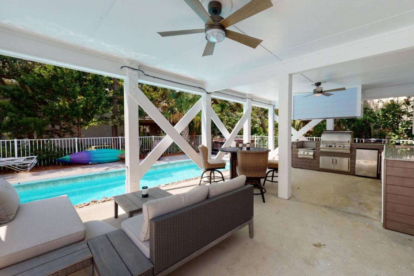 Located in Kure Beach, Dunetinnes features a private pool. The property is33 km from USS North Carolina, 6.7 km from Carolina Beach Boardwalk Amusement Park and 32 km from Thalian Hall. The property is non-smoking and is situated 200 metres from Kure Beach.