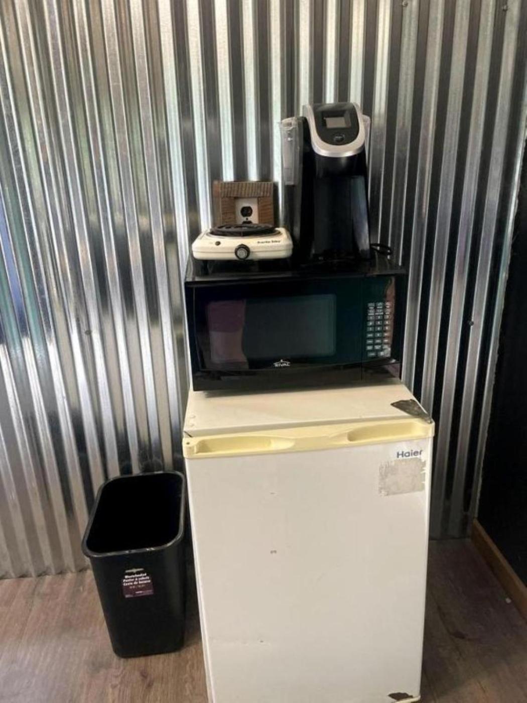 Guests can also warm themselves near outdoor fireplace after a day of cycling.