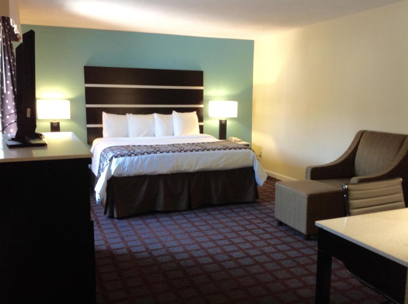 King Room - Non-Smoking. This spacious suite features a large bedroom and a kitchenette with a stove, oven, microwave and refrigerator. A flat-screen cable TV with HBO and free Wi-Fi are provided. ;