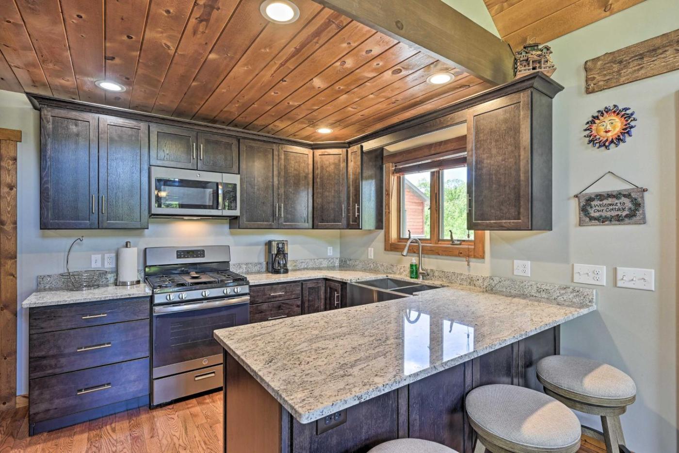 Located in New Rome in the Wisconsin region, Cabin 1 Mi to Sand Valley, 1 Block to Beach has a patio. The holiday home is 22 km from Alexander House Center For Art & History. Providing free WiFi throughout the property, the non-smoking holiday home features a spa centre.