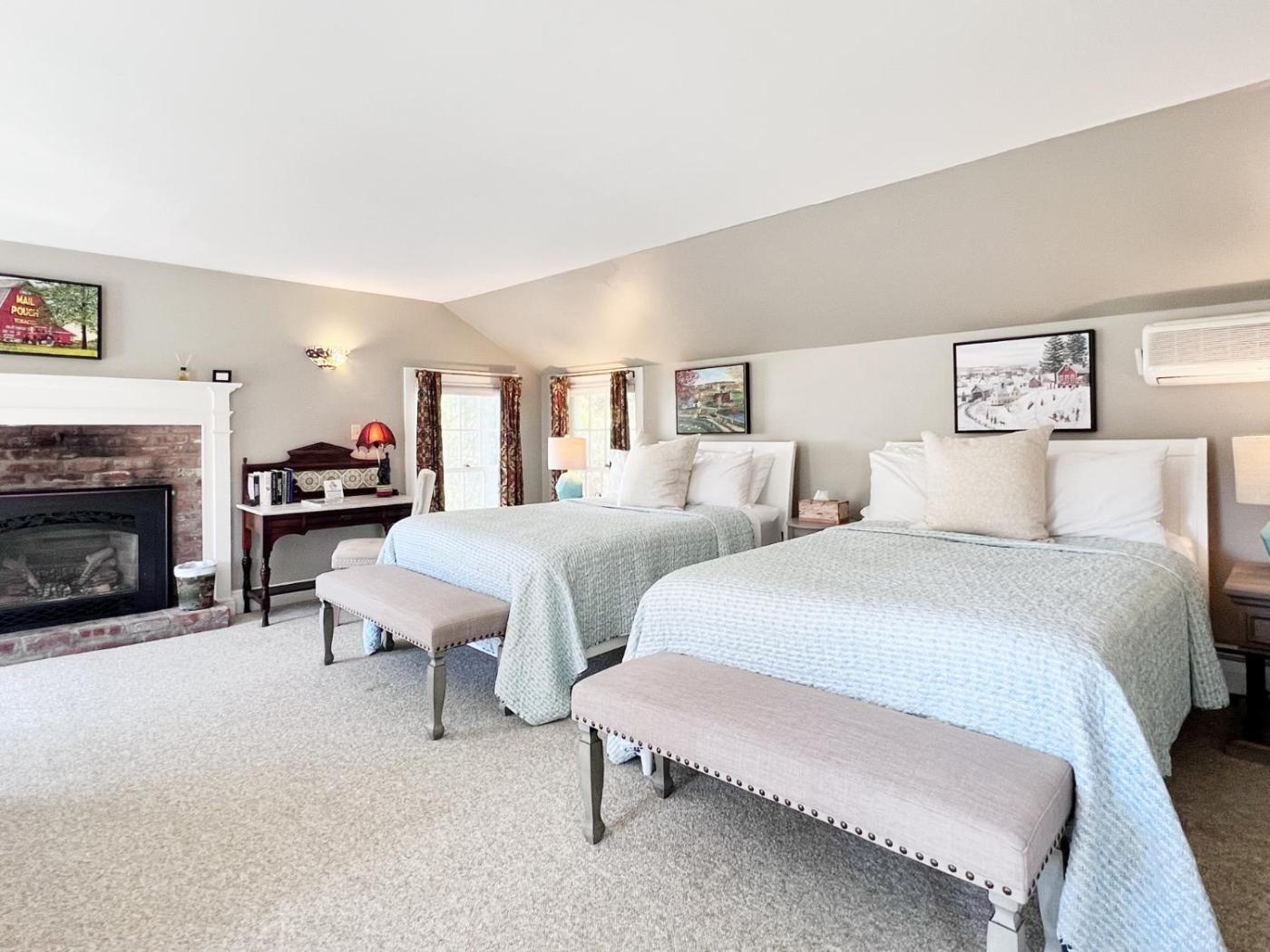 Queen Room with Garden View. This double room features a fireplace. Providing free toiletries, this double room includes a private bathroom with a bath, a shower and a hairdryer. The spacious air-conditioned double room provides a flat-screen TV with streaming services, a seating area, a wardrobe, parquet floors as well as garden views. The unit offers 1 bed. ;