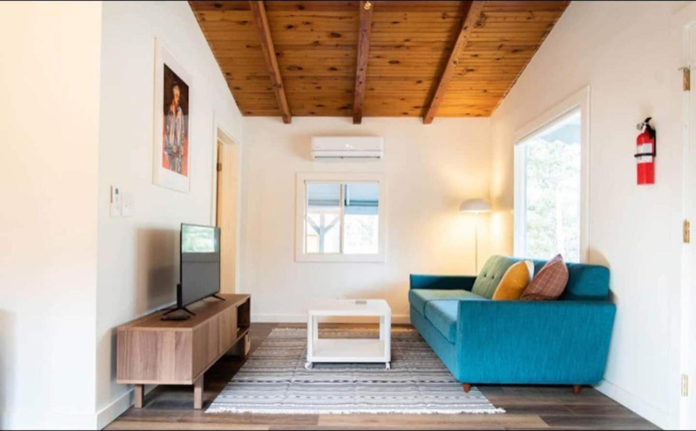 One-Bedroom Chalet. The fireplace is the standout feature of this chalet. Guests can make meals in the kitchen that features a stovetop, a refrigerator, a dishwasher and an oven. This chalet has air conditioning, a washing machine, a TV and a patio. The unit has 1 bed.