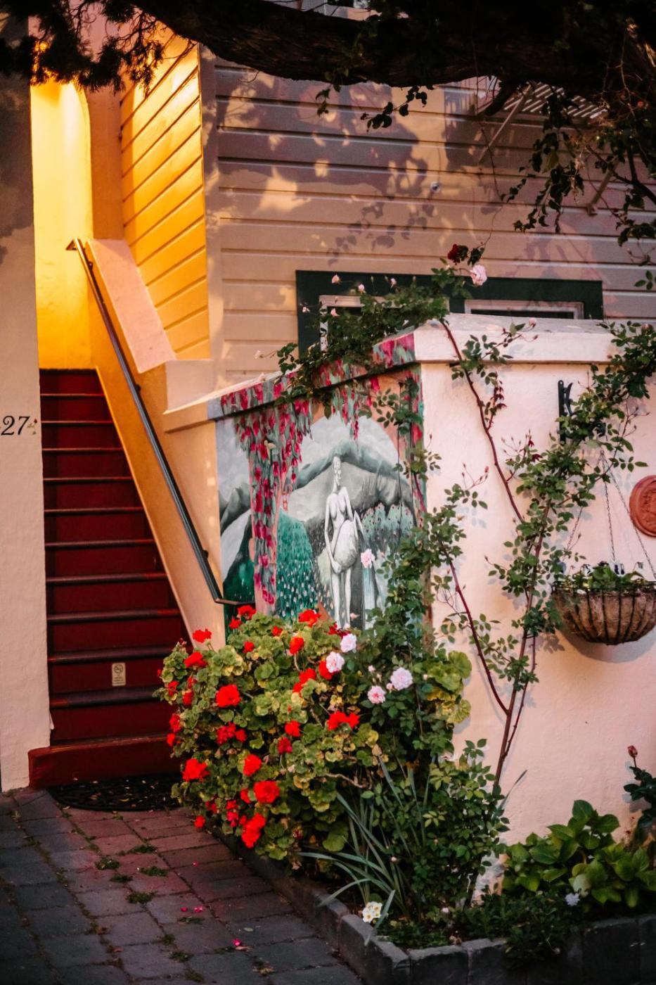 Street Facing Queen Suite (Dog Friendly). This Lombard Suite has a queen bedroom and a separate living room and kitchen. It includes a private 1 car garage. The street facing living room and kitchen has a leather sofa, a full sized refrigerator, a gas stove, a microwave, a coffee machine and cookingeating supplies. The quieter back bedroom has a queen size bed, a flat-screen TV and ironing facilities. Please note: The kitchenliving room facing Lombard Street incurs heavy street noise. Please take this under advisement when booking this room type. ;