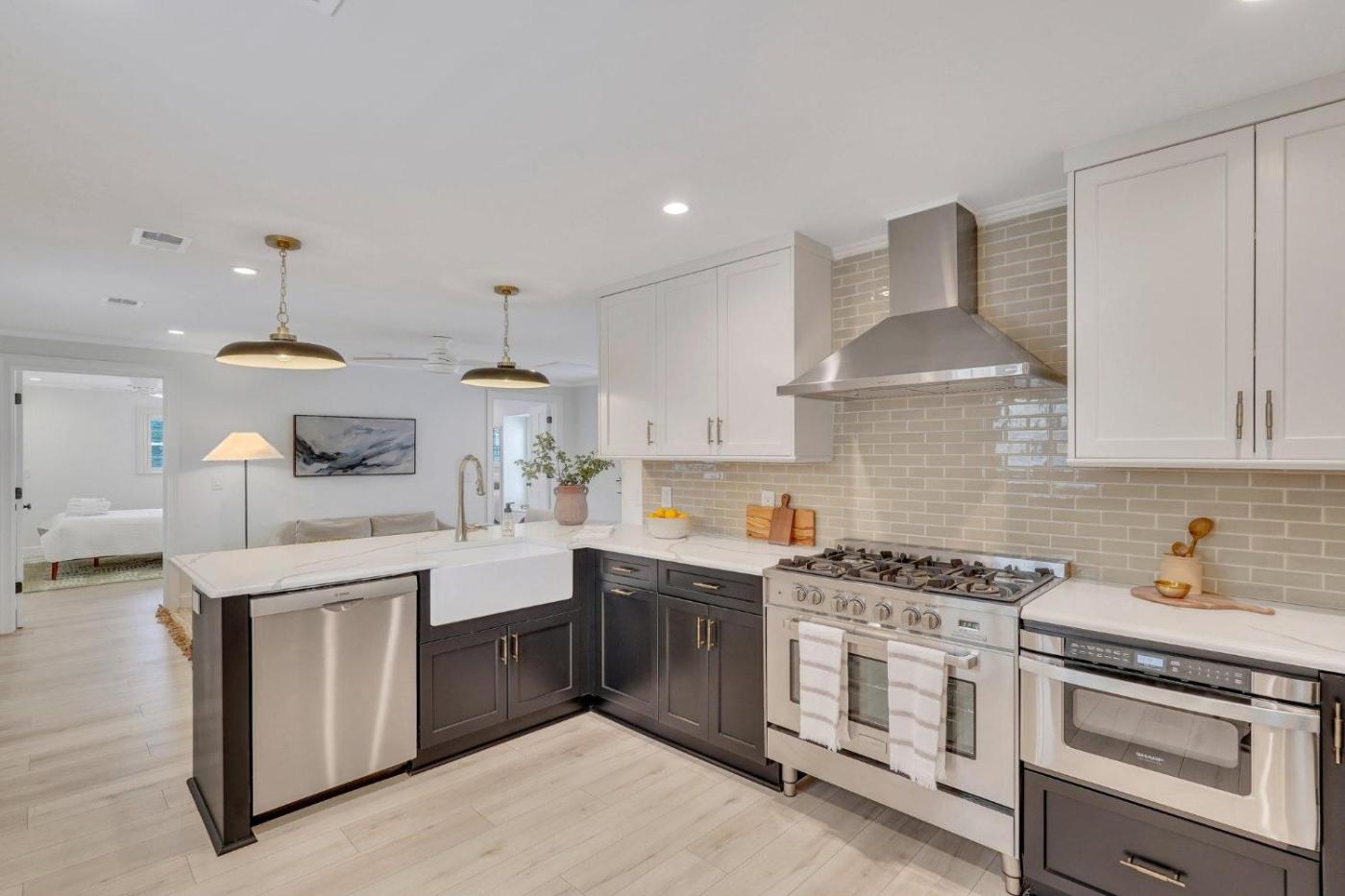 Two-Bedroom Apartment. Featuring a private entrance, this air-conditioned apartment consists of a kitchen, 2 bedrooms and 1 bathroom with a shower and a hairdryer. Guests can make meals in the kitchen that is equipped with a stovetop, a refrigerator, a dishwasher and kitchenware. The apartment provides a flat-screen TV with cable channels, a tea and coffee maker, a seating area and a dining area. The unit offers 2 beds.