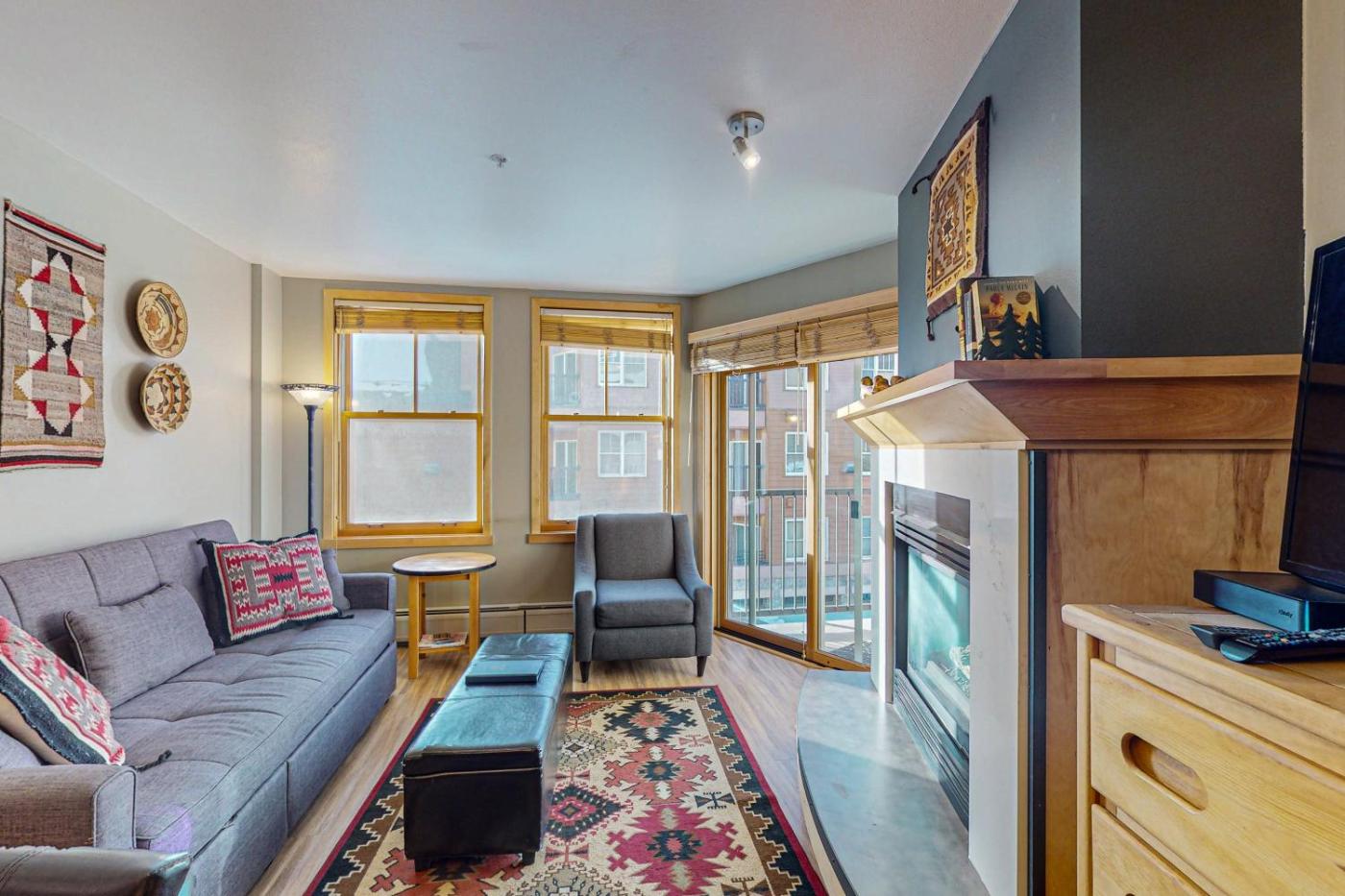 One Bedroom Apartment. This apartment provides a fireplace. This apartment includes 1 living room, 1 separate bedroom and 1 bathroom with a hairdryer and free toiletries. Meals can be prepared in the well-fitted kitchen, which has a stovetop, a refrigerator, a dishwasher and kitchenware. Boasting a terrace with mountain views, this apartment also offers a private entrance and a TV with streaming services. The unit has 2 beds.