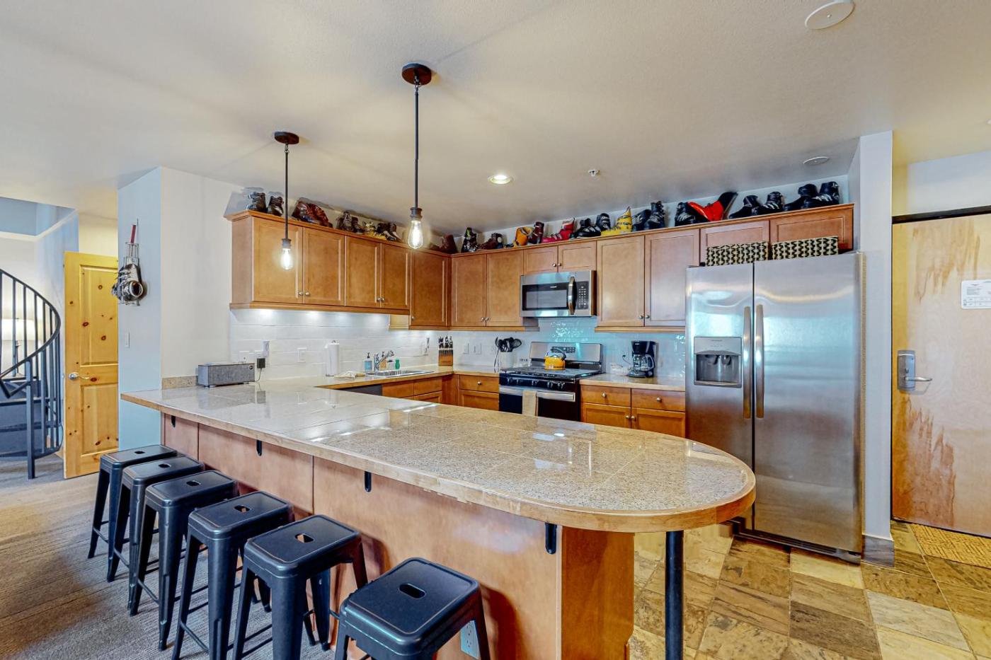 Two Bedroom Apartment. The fireplace is the standout feature of this apartment. This spacious apartment includes 1 living room, 2 separate bedrooms and 3 bathrooms with a hairdryer and free toiletries. The well-fitted kitchen has a stovetop, a refrigerator, a dishwasher and kitchenware. The apartment offers a TV with streaming services, a private entrance, a tea and coffee maker, a seating area as well as mountain views. The unit has 6 beds.
