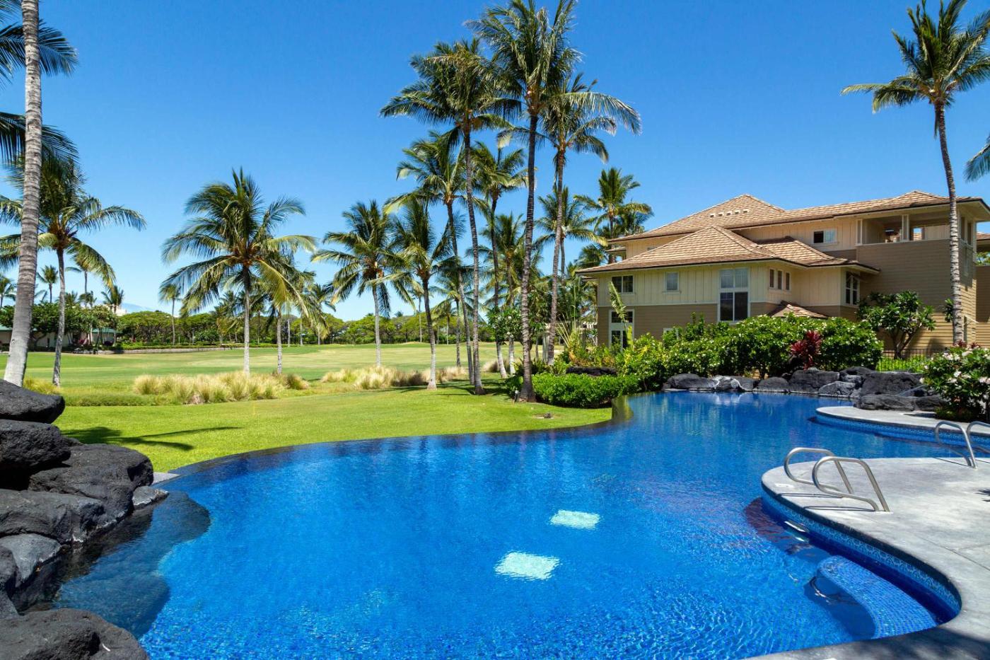 Situated in Waikoloa, 1.2 km from Anaehoomalu Beach and 35 km from Kaloko-Honokohau National Historic Park, Fairway Villas Lanai Overlook offers air conditioning. Boasting a lift, this property also provides guests with an outdoor pool. Featuring free WiFi throughout the property, the non-smoking holiday home has a fitness centre.